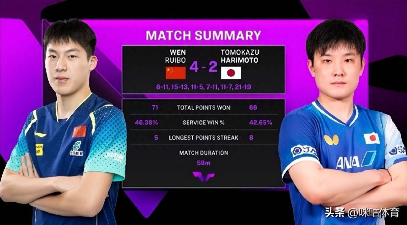 2026WTT重庆冠军赛男单半决赛献技焦点对决,国乒小将温瑞博迎战日真名将张本智和,经由六局热烈角逐,温瑞博以4-2的总比分打败敌手,到手晋级男单决赛,将在冠军争夺战中对阵F勒布伦。