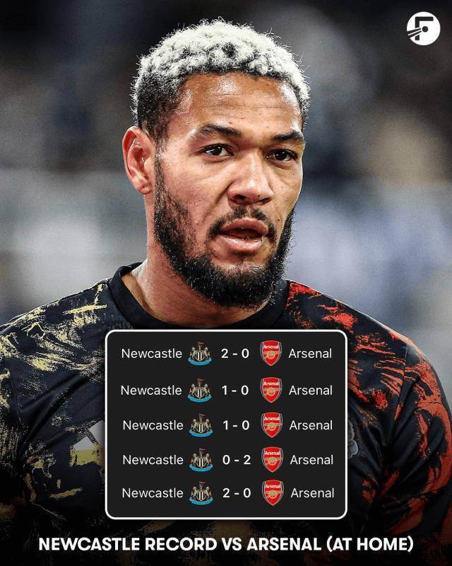 纽卡近5次主场对阵阿森纳,4胜1负,4场零封。