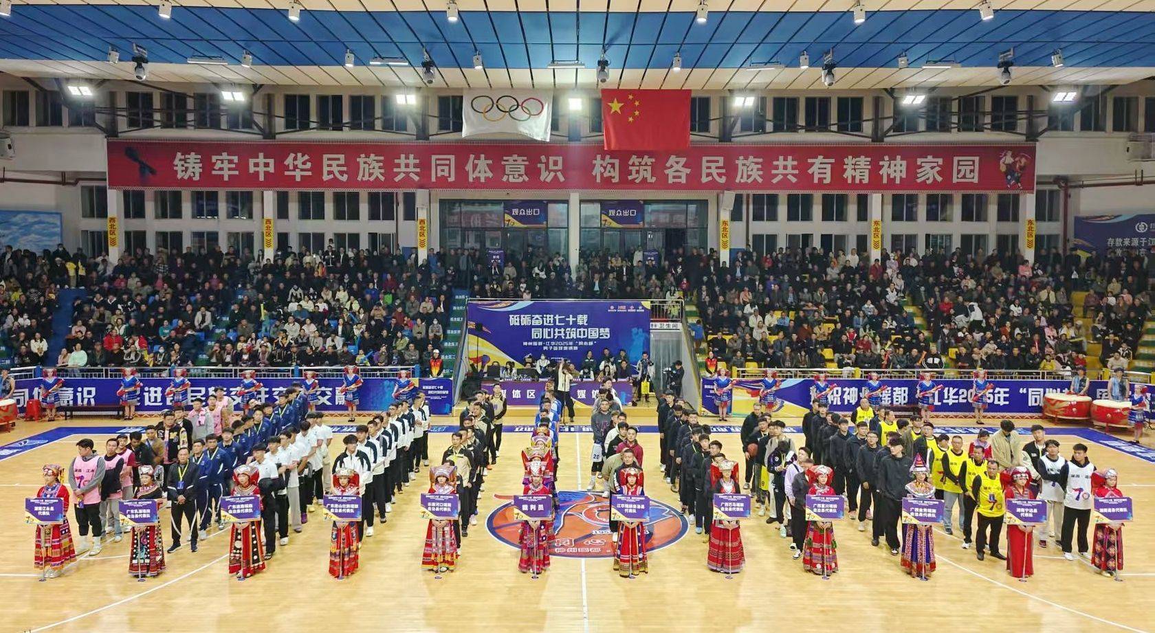 秋意正浓添飒爽,四方柔柔汇江华。10月24日19:30,神州瑶都·江华2025年“齐心杯”须眉篮球邀请赛在湖南永州江华民族体育馆开幕。来自湖南、广西、广东、云南四省(区)的11支代表队皆聚一堂,以篮球为媒,共叙民族合作心情,共展畅通竞技风范,共同为江华瑶族自治县竖立70周年献上体育贺礼。