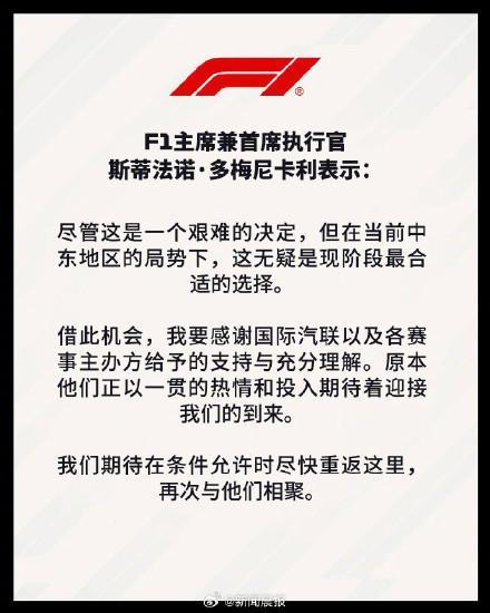 北京期间3月15日凌晨,天下一级方程式锦标赛官方告示,由于受中东局面的影响,本年巴林站和沙特站的比赛将会取消。官方公告称,巴林大奖赛与沙特阿拉伯大奖赛将不会在4月举行。 受中东地区现阵势面影响,这两场大奖赛,以及同时的F2、F3和F1学院系列赛,均无法按原定缱绻举办。赛事方虽有计划过替代决策,但4月将不会安排任何替补赛事。 证实赛程安排。巴林大奖赛原定于4月12日举行,沙特大奖赛则定于一周后。(倾盆新闻)